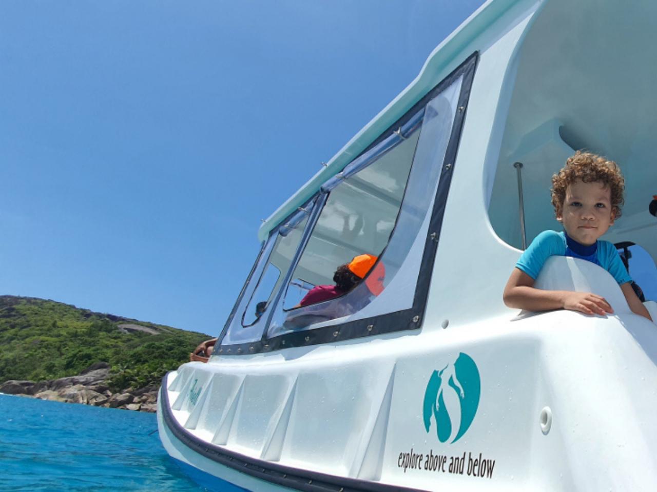 Experience the vibrant marine life of Baie Ternay Marine Park on this Family-Friendly 6-Hour Private Tour – Explore Baie Ternay Marine Park by glass-bottom boat. This family friendly activity in Seychelles is perfect for all ages—glide over colorful coral reefs, granite rock formations, and spot Green Sea Turtles and tropical fish through six large underwater viewing windows—no swimming required! It’s one of the best family friendly activities in Seychelles, designed for comfort, safety, and unforgettable marine encounters.