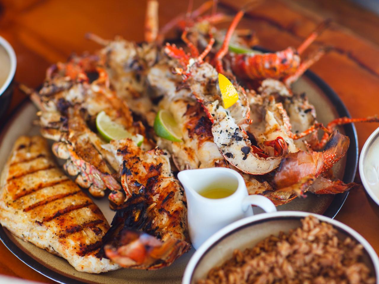 Complete your seafood extravaganza with an array of mouthwatering sides: Mixed Salad, a fresh and crisp garden salad with a tangy vinaigrette; Garlic Baguette Bread, warm, crusty bread with a garlic-infused buttery spread; Marinade Grilled Vegetables, a medley of perfectly grilled veggies bursting with flavor; Grilled Corn on the Cob, sweet and smoky corn on the cob, charred to perfection; and Crispy Garlic and Sea Salt Potatoes, golden-brown potatoes with a crispy exterior and a hint of garlic and sea salt.