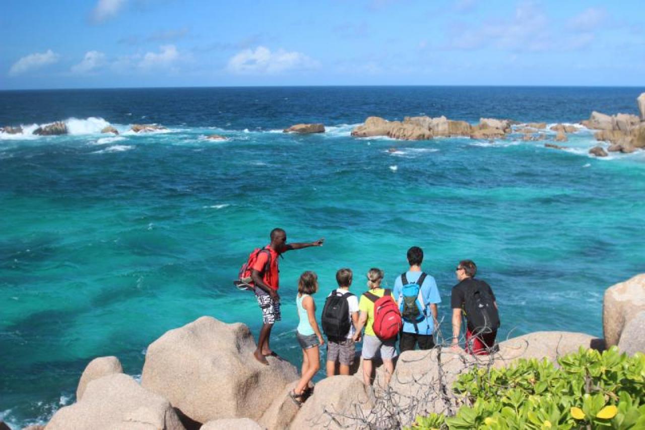 Embark on a thrilling guided hike to the secluded Anse Marron, swim in natural pools, and discover La Digue's stunning beaches, unique wildlife, and breathtaking landscapes. An unforgettable adventure awaits!