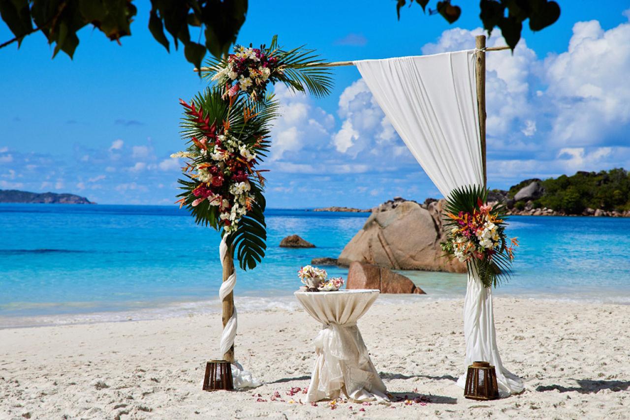Celebrate your love in one of the most beautiful locations in the world with our 1.5-Hour Standing Wedding Package on the stunning beach of Anse Boudin, Praslin. This intimate ceremony is the perfect way to exchange vows in a breathtaking tropical setting. Our package includes a beautifully decorated wedding setup with a coconut leaves arch adorned with vibrant tropical flowers, a fresh bridal bouquet, and a matching buttonhole for the groom. The ceremony is conducted by a Seychelles Civil Officer, ensuring a legal and official wedding, with the option of two witnesses if needed. We’ll also take care of all the necessary legal preparations, including the issuance of your marriage certificate with an apostille.