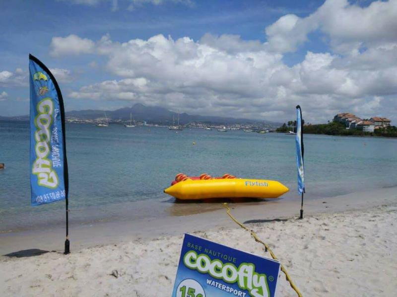 Parachute ascensionnel et engins tractés La sympathique équipe de Cocofly vous emmènera pour un survol de la baie de Fort de France et de ses eaux limpides de l'anse mitan à la pointe du bout pour une balade d'une quinzaine de minutes sous son parachute. Un moment inoubliable de calme et de sérénité !!! Les engins tractés : C'est dans une ambiance locale et décontractée que vous vous amuserez à bord de nos bateaux avec nos engins tractés, canapés, matelas ou flyfish entre amis ou en famille, pour des sensations sportives ou en version balade selon votre choix.